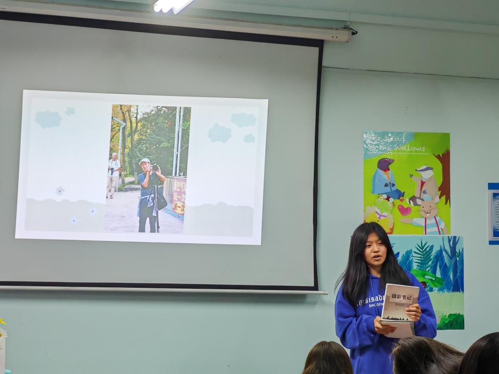 在分享完照片之后,摄影达人王思颖同学向在场的同学分享了拍照方面的技巧,并推荐了《摄影笔记》这一本书。王思颖表示:每一个人都可能成为摄影达人。拍摄技巧都是服务于情感表达的。再高超的技巧都比不过真挚、浓厚的情感。最好的照片就是记录下自己感受到的真情实感。