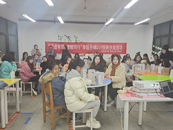 落叶缤纷,校园各角皆是考研奋斗者的身影。为梦想努力的考研人展示了青春最美的样子。为了给在寒冷岁末努力奋斗的18级考研人加油鼓劲,激发19级考研人的昂扬斗志,外国语学院“成长氧吧”辅导室分别于12月15日、17日开展了两场“研途有我,温暖同行”的幸运手绳DIY沙龙活动。