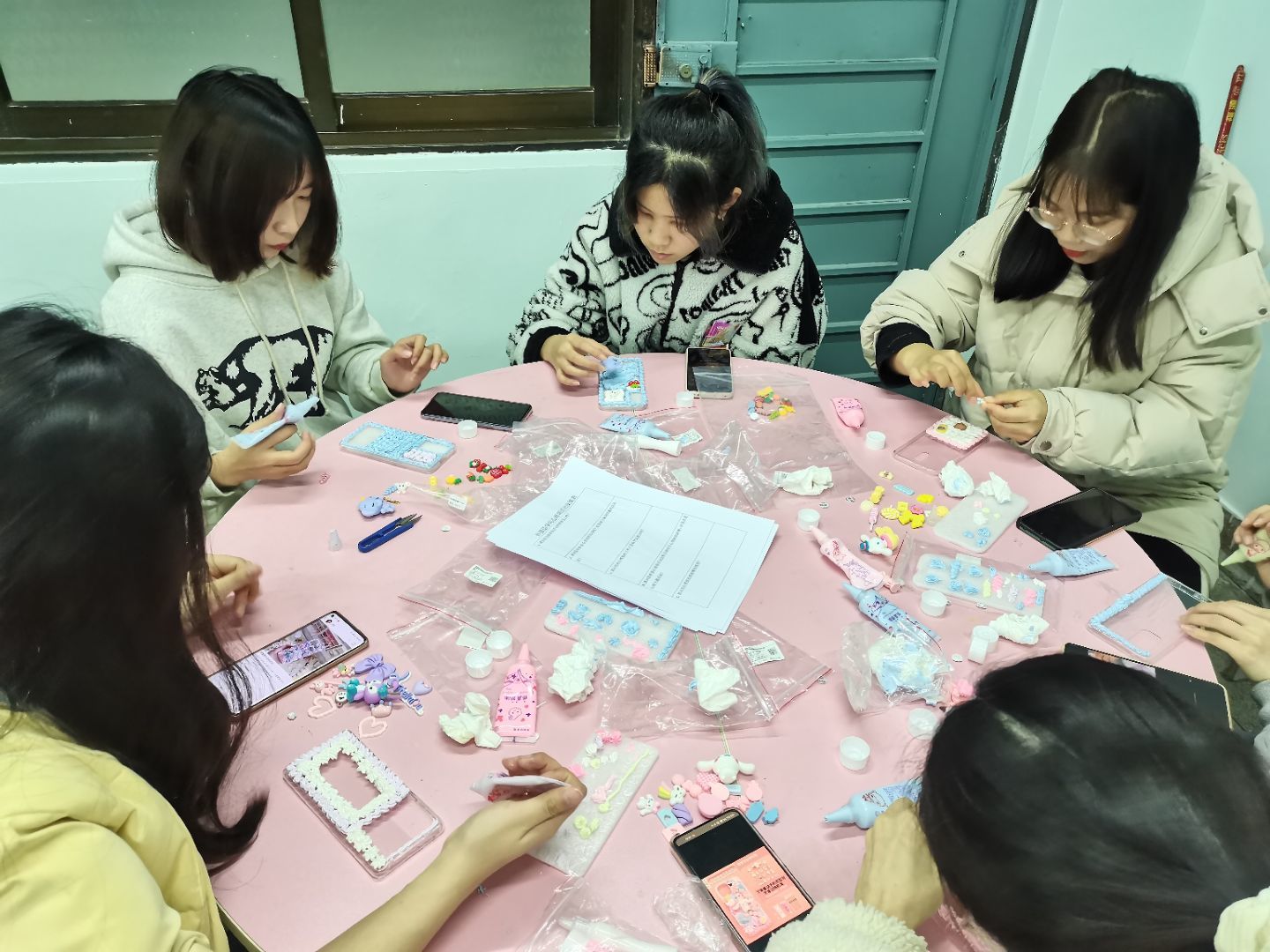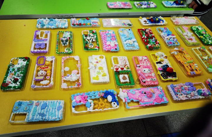 在这特殊的日子里,心理部同学首先播放了如何缓解女生生理期疼痛的视频,科普女性健康知识,帮助女生更好地爱护自己。随后,工作人员分发奶油胶、手机壳、裱花嘴等DIY工具,播放手机壳的制作视频。活动正式开始后,工作人员贴心的指导大家如何使用奶油胶,一一解答同学们的问题。同学们细心认真地使用DIY工具,尽情发挥创意和想象,运用各种小物件将原本单调的手机壳点缀得精致可爱。每一个手机壳都凝聚着大家的创意和思考,有小巧玲珑的玉桂狗;呆萌搞怪的史迪仔;憨态可掬的眯眼小象……整个活动过程中,大家相互交流创意,互帮互助,现场气氛十分融洽。