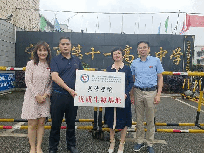5月30日上午,长沙学院“优质生源基地”授牌仪式在宁乡市第十一高级中学举行。双方签署了优质生源基地协议,并举行了优质生源基地授牌仪式。长沙学院招生与就业指导处处长黎文普、外国语学院党总支书记刘秋菊、党总支副书记刘琼、学工办主任陈茂,宁乡市十一中校长袁友良参加仪式。