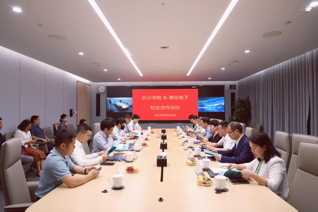陈赤平对景旺公司的热情接待表示衷心感谢,对景旺公司先进的生产设备、严谨的管理体系以及卓越的市场表现给予了高度评价。他介绍了学校的办学历史、基本情况、专业特色以及科研实力。陈赤平强调,长沙学院一直致力于培养高质量的应用型人才,希望通过与企业的紧密合作,将学校的科研资源、人才优势与企业的实际需求相结合,共同推动科技创新和产业升级,实现人才培养与市场需求的有效对接。