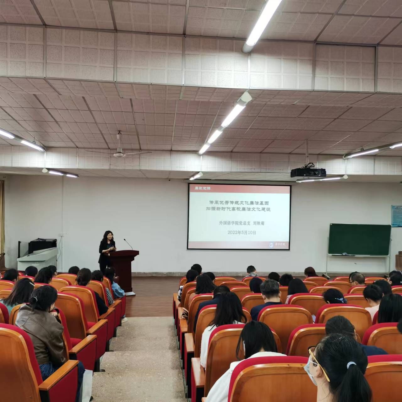 为扎实推进清廉长大建设,树立清廉守正作风,5月10日下午,外国语学院党总支开展了“党员说清廉”主题党日活动。