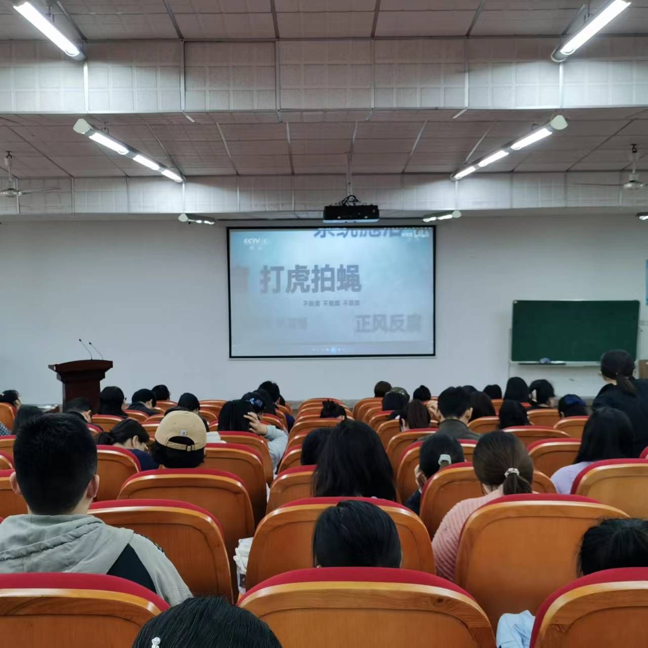 第一阶段在宁静楼T2进行,优秀入党积极分子和学生党员带来了精彩的清廉诗文诵读节目《等待》和《清风诵廉筑梦航天》;院长刘芬以《从一封廉洁家书讲起》为题、党总支书记刘秋菊以《传承优秀传统文化廉洁基因加强新时代高校廉洁文化建设》为题上了廉政党课;集体观看电视专题片《零容忍》第5集《永远在路上》;此外,刘晓露、尹铂淳老师进行了课程思政的课堂预讲,将外语课程与思政建设相结合,获得了大家的一致好评。