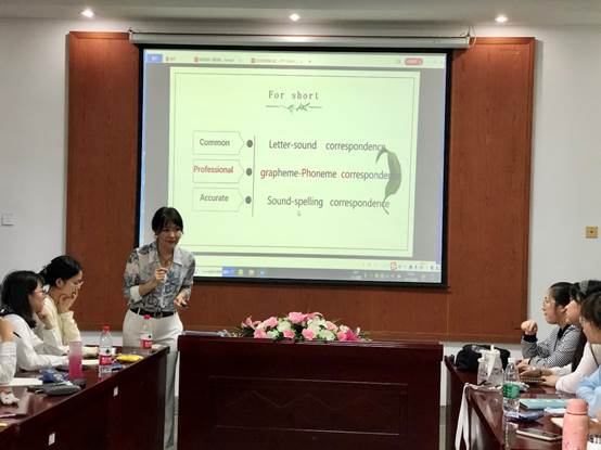 实习培训为期1.5天,包含职场技能和教学技能两大类主题,职场技能培训由闻达人力资源部部长Irene带领大家展开,《闻达教育企业文化》使学生更解教育行业的前景、和闻达企业文化,《职业规划》让学生了解幸福人生三支点以及职场年龄发展路线图,学生们能认识到每个职场年龄层不同阶段要重点发展的能力。对于即将踏入职场实习的学生,这个培训主题能更好的帮助大家关注从学生到职场人士的角色变化,寻找职业发展目标。教学技能培训由闻达英语阅读项目部部长Fanny带领同学们认识英语入门高效学习法 -Phonics教学法,初步感受“见词能读,听音能写”的教学效果。