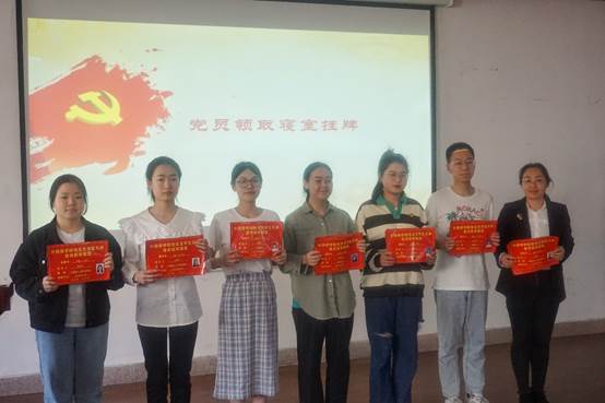 而后,党员依次领取寝室挂牌。姚金安、刘桢、赵琼、陈茂分别授予学生党员寝室牌匾并留影,传达对学生党员的期望。