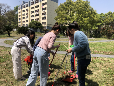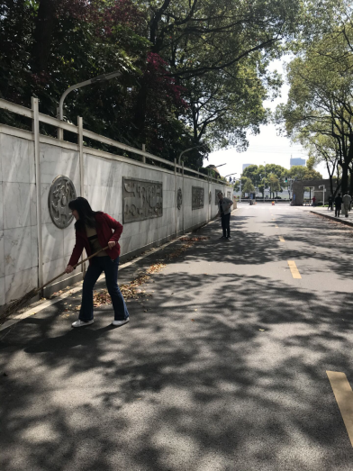 在活动现场,党员志愿者们,每人负责一段区域,大家手持铁锹、垃圾箱或者扫帚,发扬不怕苦、不怕脏的精神,分工合作,对宁静楼周边的落叶、塑料垃圾等进行了全面认真地清理打扫,不放过任何细节,废纸、落叶、塑料垃圾都被清扫干净。