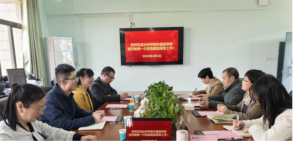 4月1日下午,台州学院外国语学院副院长崔瑞国同志一行4人莅临我院,就外语专业学生国际传播能力培养等进行了专题调研。学院班子参加了座谈,双方就国际传播能力的培养路径、英语学科的发展模式等议题进行了深入的探讨与交流。会议由党总支书记刘秋菊主持。