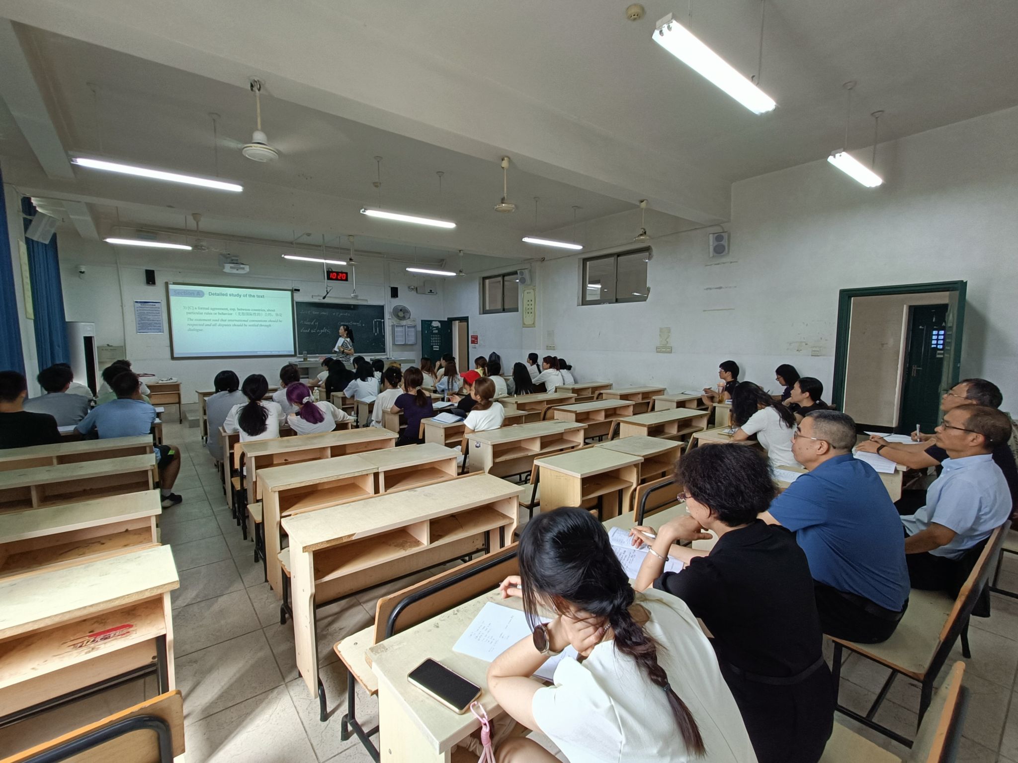课堂上,潘琛老师精神饱满,讲授富有激情。她通过多样化的教学手段有效组织课堂,展现了丰富的教学经验和娴熟的驾驭能力。学生们注意力集中,互动积极,课堂气氛既严肃又活泼,教学环节衔接顺畅,得到了听课领导和督导组的高度认可。