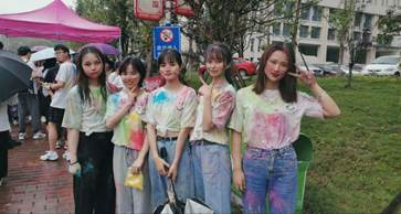 上午8:30,祝磊副校长宣布长沙学院第十六届大学生心理健康教育月活动正式启动。学工部、校团委、心理中心和二级学院心理联络员老师通过视频VCR表达了对活动和同学们的美好祝福。在嘹亮的歌声和激情的舞蹈中,活动正式开始。活动以团队的形式进行,5-7人一组,共七十八组。一声起跑令下,同学们身穿统一的白色T恤从永康出发,途径永康操场、维智广场、理工楼数字地球仪、大礼堂前坪和新校门共五个任务点。每个任务点都设有形式多样的小游戏环节,有放声歌唱的唱歌游戏,有弘扬党史的猜歌、画画、模仿游戏,有考验队员默契及合作的夹气球、跳绳游戏等等。参赛人员需全队完成游戏后才能继续闯关。每一个任务完成后,工作人员都会把手中的彩粉洒向参赛选手并分发通关书签。一路下来,彩粉漫天,五颜六色的T恤,头发,笑脸,五彩缤纷的心情,到处充满着青春洋溢的欢乐气息,让整个校园都染上了绚丽的颜色。活动结束后,大家纷纷合影留念,在QQ空间、朋友圈和社交平台分享这一场难忘的狂欢派对。