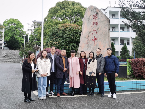 接着走访的是宁乡市第六高级中学。学校主管教学的副校长杨华致欢迎辞,校长杨海强做重要讲话,在该校工作的外国语学院校友刘殷和周莎参加会议。杨海强谈到四点:一是六中外语组是学校最成熟的教研组,教研组10余位英语老师中两位是来自长沙学院外国语学院,感谢长沙学院对人才的培养和输送;二是学校有两个长沙市首席名师工作室,教师授课都是经过9个环节的打磨才走上讲台,来校实习的学生一定会有收获;三是六中德育教育管理非常完善,可以和外国语学院有更多合作空间;四是六中一定会成为长沙学院优质生源基地。刘芬表示,高校在努力推进课程思政,可以跟六中共同探讨交流。座谈会后,在两位杨校长和在两所学校工作的几位优秀校友陪同下一起参观了六中校史馆和校园。