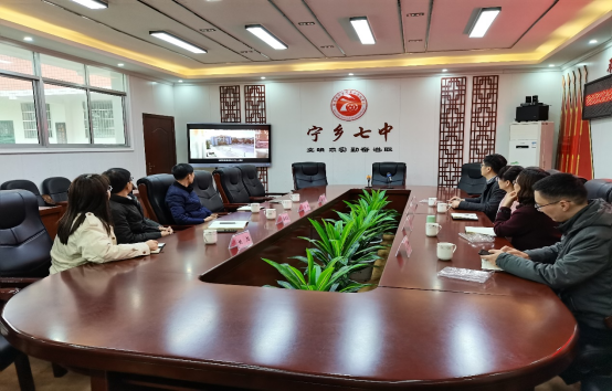 首先走访了宁乡市第七高级中学。主管教学的副校长蒋跃良是我校95级校友,他首先向来访的母校老师表示热烈地欢迎;接着,他指出,七中四位一体教学模式对来校实习的学弟学妹的成长成才会有很大帮助,也希望能与更多大学生进行交流探讨;母校的支持也会促进七中的发展,七中一定会成为母校的优质生源基地。刘芬和刘秋菊等人充分肯定了七中的办学特色,介绍了长沙学院办学特色和战略目标、外国语学院的各专业特点,欢迎七中学子报考长沙学院。双方就实习基地、志愿服务基地和优质生源基地建设进行比较具体的特烈的交流。在该校工作的外国语学院11级校友姚旭参加了会议。