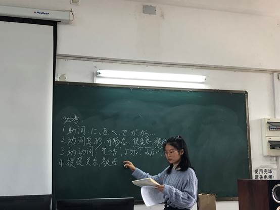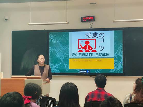 实训第二阶段(11月9日至11月13日)为名师讲座,实训学生前往湖南师范大学听讲座学习。在湖南师范大学日语系向卿、杨柳、闫秀、李曼、肖婧五位老师的深刻讲解和耐心指导下,带领学生们完成了高中日语听力课、阅读课的授课研讨;日语假定表达与格助词的授课研讨以及高中日语教师的自我成长的学习。几位名师的讲座,让同学们受益匪浅,深刻意识到了自己水平与真正的老师要求的差距,更加坚定了同学们努力学习,不断提高自己能力的决心,起到了很好的激励作用。