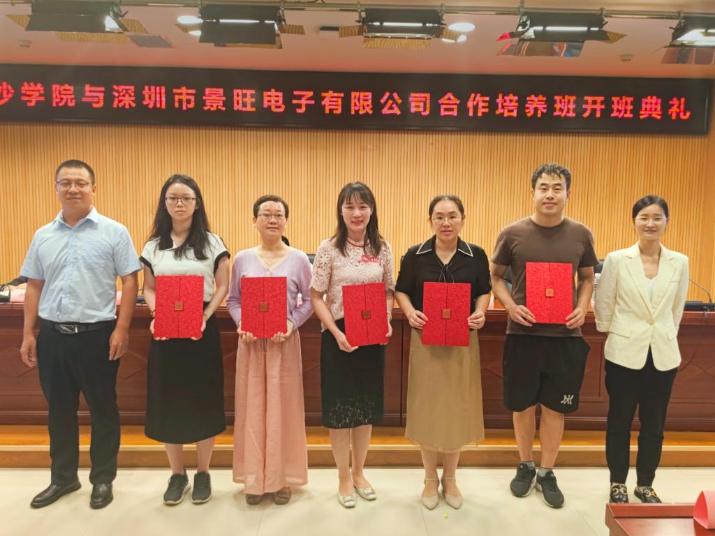 2024年9月20日,长沙学院与深圳市景旺电子有限公司合作培养班的启动仪式在学校图书馆一楼报告厅隆重举行。长沙学院招生与就业指导处处长黎文普、副处长谢艳,外国语学院院长李海军、党总支书记刘秋菊,景旺电子有限公司人力资源总监王文、人力资源经理刘辉参加开班仪式。
