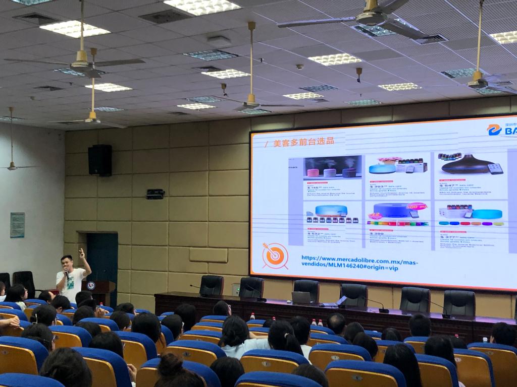 企业导师杨超云结合丰富的行业经验和实际案例深入浅出地介绍了传统外贸行业与跨境电商行业的差别,展示了多种跨境电商的第三方平台,分析了不同类型跨境电商企业的特点和优势、劣势,和同学们分享了跨境电商选品的技巧、方法和注意事项。接着,HR主管梁树东介绍了佰森乐的创业和发展过程、主要经营状况、人才需求情况。讲座内容丰富,同学们收获了很多来自跨境电商一线企业的知识和经验,更加清晰地认识到自己的专业定位和发展方向,现场气氛非常活跃,同学们与校友进行了积极互动,讲座赢得在场师生的一致好评。