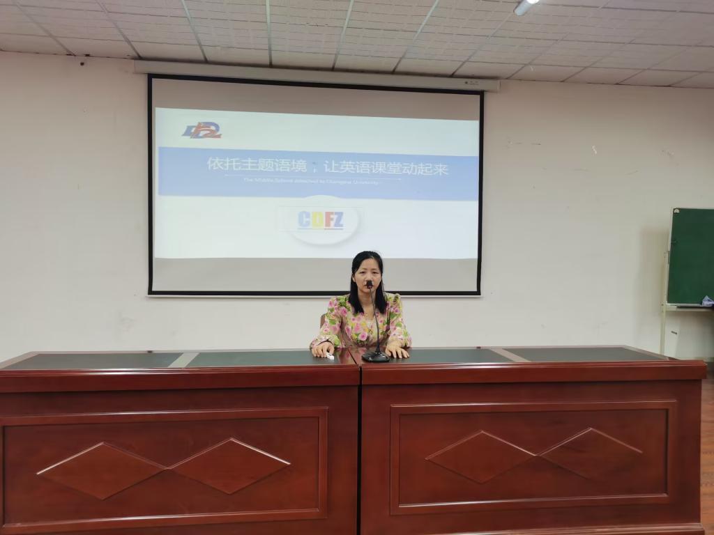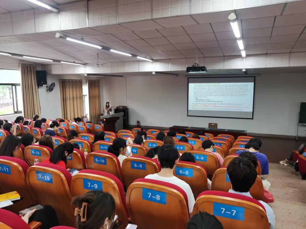 2023年6月13日上午,长沙大学附属中学高中英语教师唐苗老师在我校宁静楼T2报告厅举行了题为“依托主题语境,让英语课堂动起来”的讲座。外国语学院周丽老师主持了讲座,20级英教方向所有学生参加了讲座。