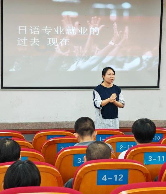 为深化职业规划教育,发挥优秀校友的榜样引领作用,助力日语专业学生把握就业形势、提升职业竞争力,6月10日下午,外国语学院在宁静楼T2教室举办“日语专业职业发展与就业前景”专题讲座。本次活动特邀2009届优秀校友田静雅和2013届优秀校友刘佳担任主讲嘉宾。日语系主任赖军芳、2022级日语专业全体学生参加了讲座。
