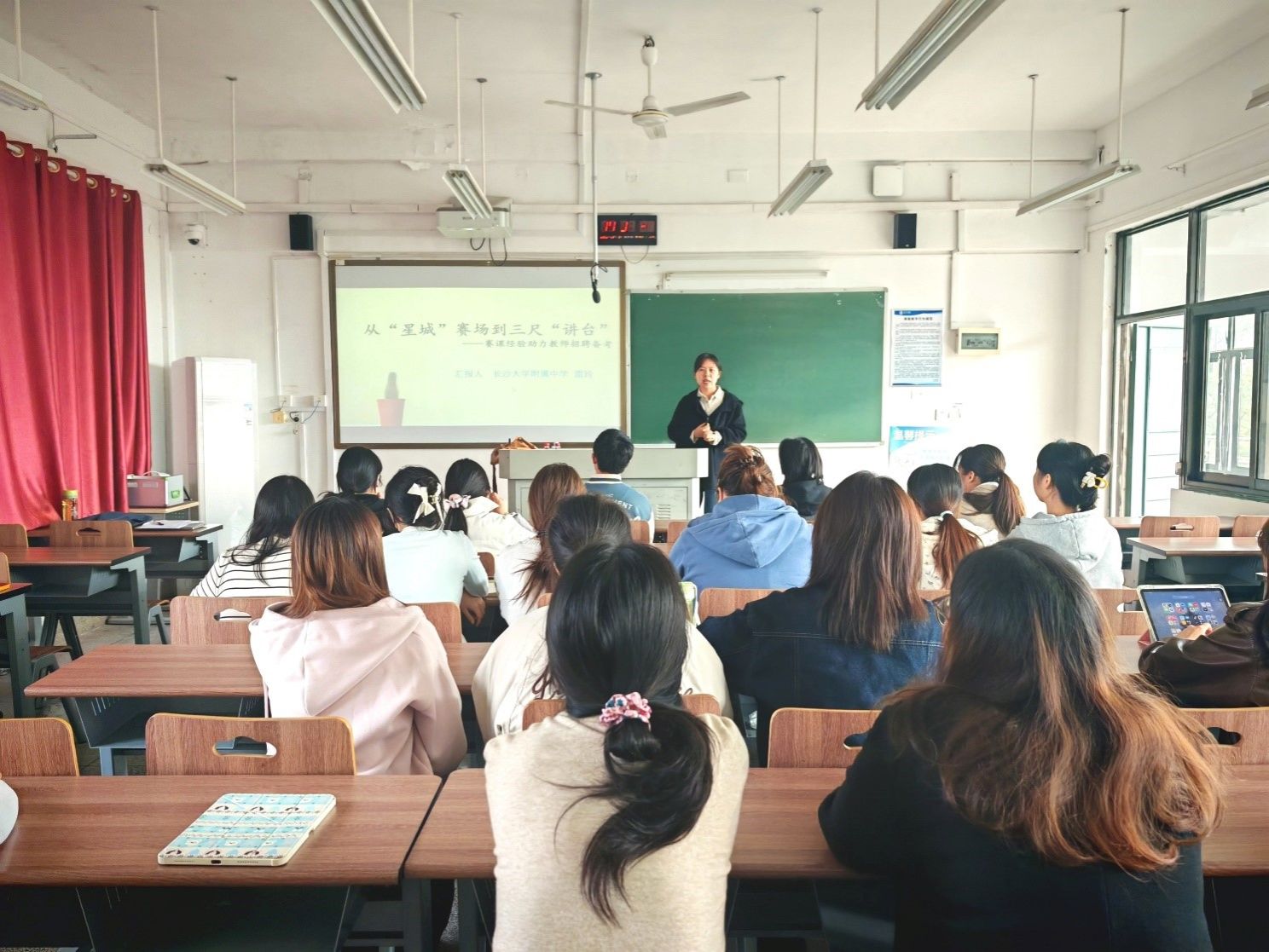 在“比赛介绍”环节,雷老师梳理教学比赛流程与评审标准,为同学们指明备赛和备考方向。接着,在“课例回顾”中,她结合自身在“星城”杯等赛事的获奖课例进行片段教学展示,剖析教学设计亮点与巧思,展现先进教学理念与课堂驾驭能力。最后,在“比赛感悟”部分,雷老师分享从赛课到日常教学的心路历程,强调赛课经历是技能淬炼与教育情怀升华,其经验对教师招聘考试试讲、面试环节有指导意义。讲座现场气氛活跃,参与教育实习的学生全程认真聆听,互动环节踊跃提问。同学们称雷老师讲座“干货”多,有理论指导和实操建议,化解了他们求职备考的迷茫与焦虑,让他们对未来教师职业发展更有信心。